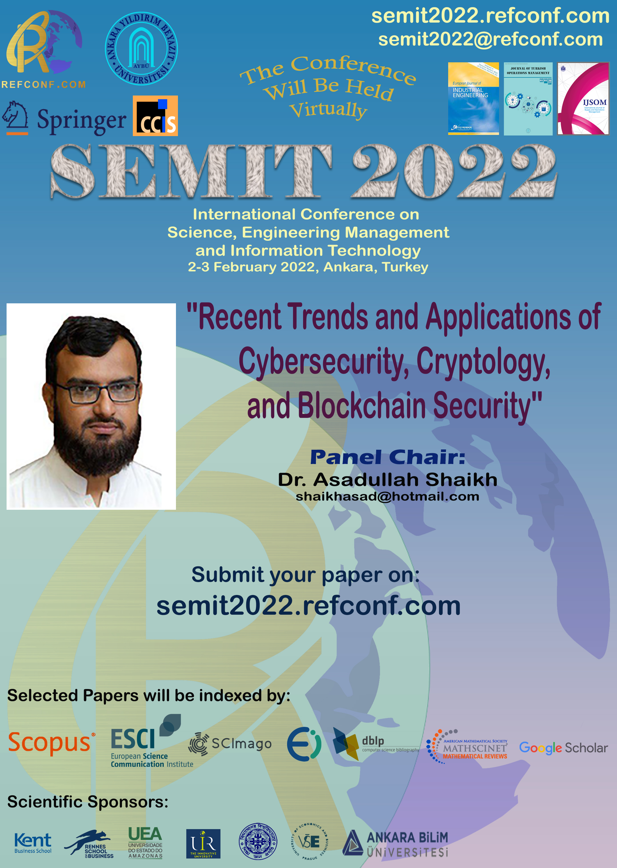 Panel Chair: SEMIT 2022 International Conference on Science, Engineering and Management and Information Technology. February 2-3 2022, Ankara, Turkey [Panel CFP][Web][Online]. Due Date is January 01, 2022.